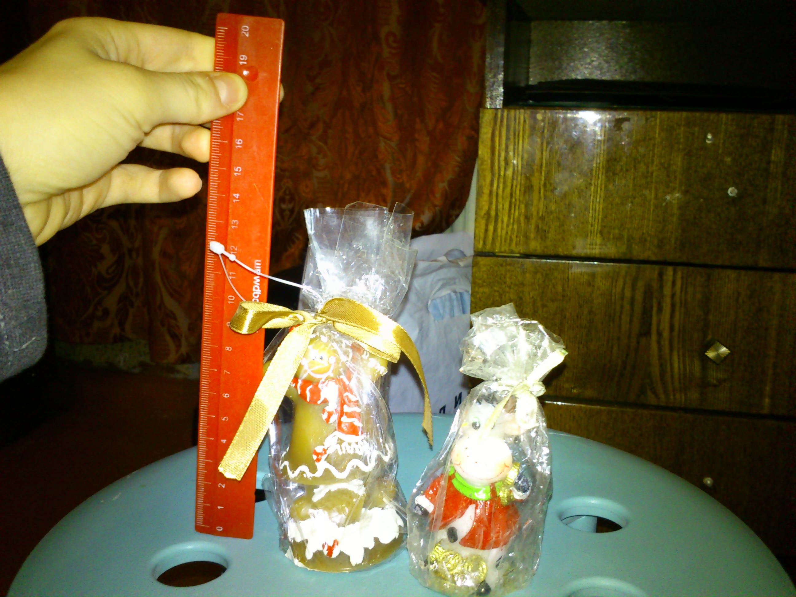 свечка "имбирный человечек" (вроде из красного куба) - примерно 10 см в высоту.