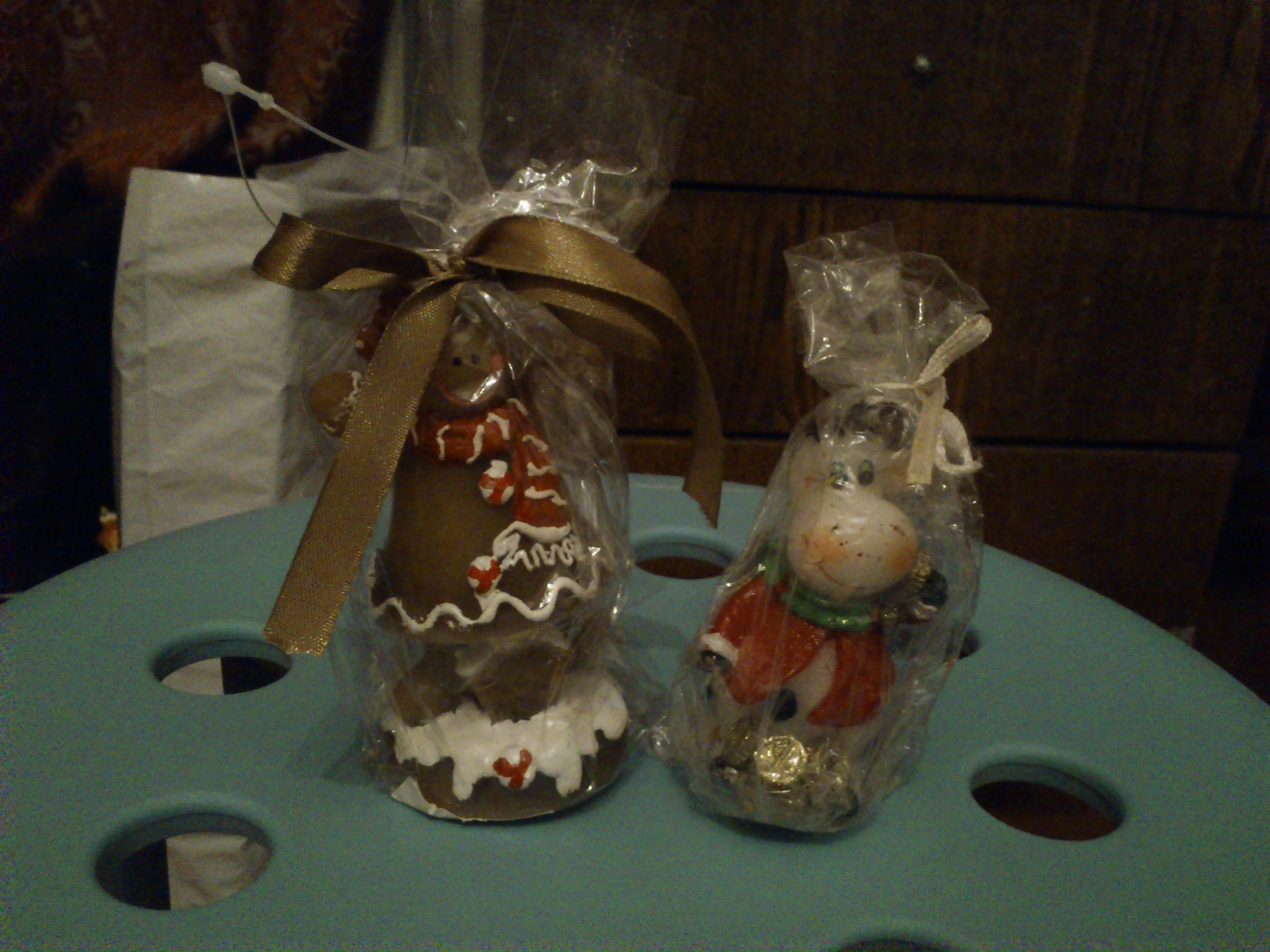 В подарочных целлофановых упаковках, завязанных бантиком :)